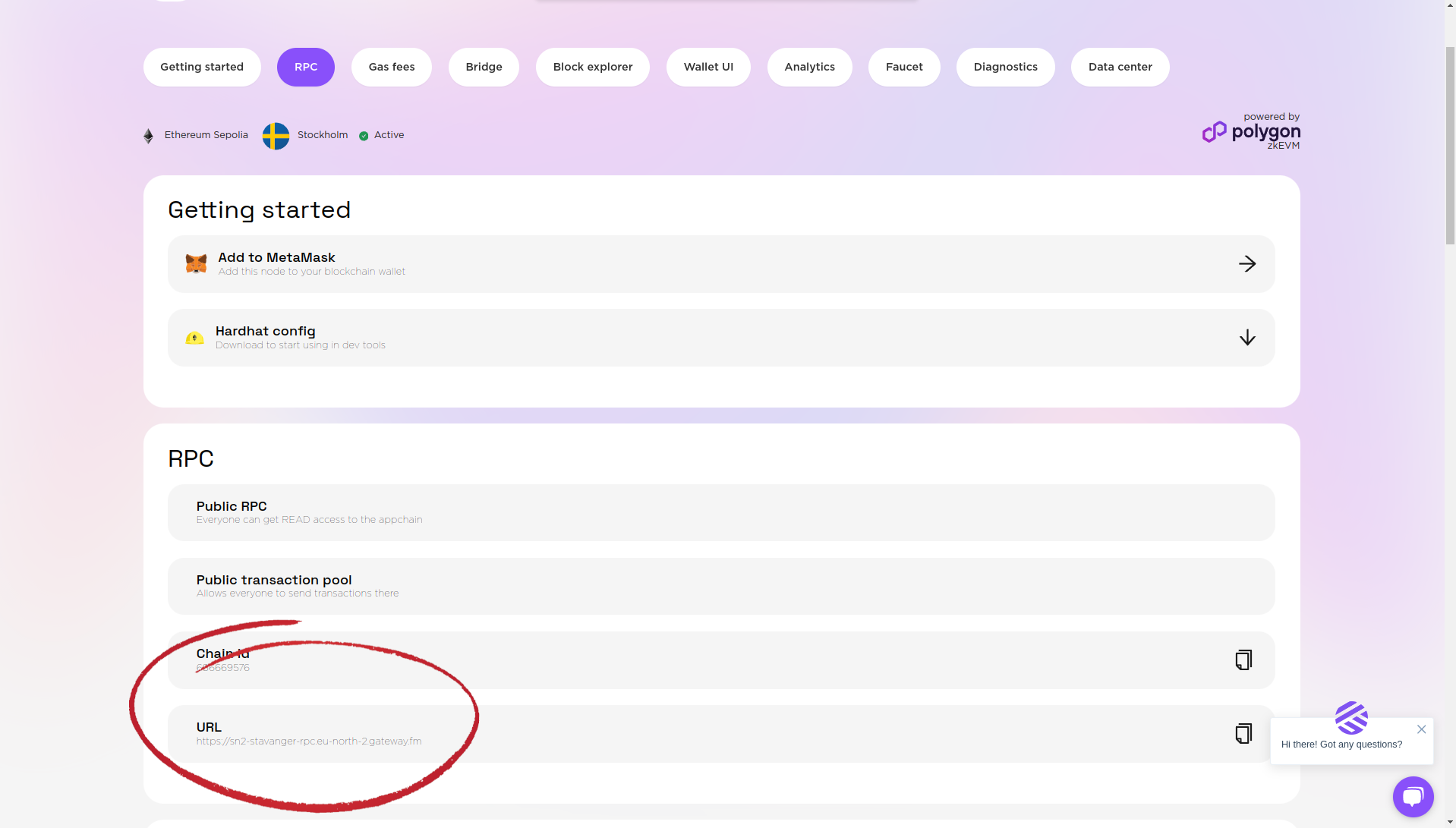 1. Create your rollup ([How to Create a Rollup](https://docs-presto.gateway.fm/overview/main-functionality/how-to-create-a-rollup)), open it and get the RPC url ([What Is RPC](https://docs-presto.gateway.fm/overview/features-for-developers/what-is-rpc))<br>