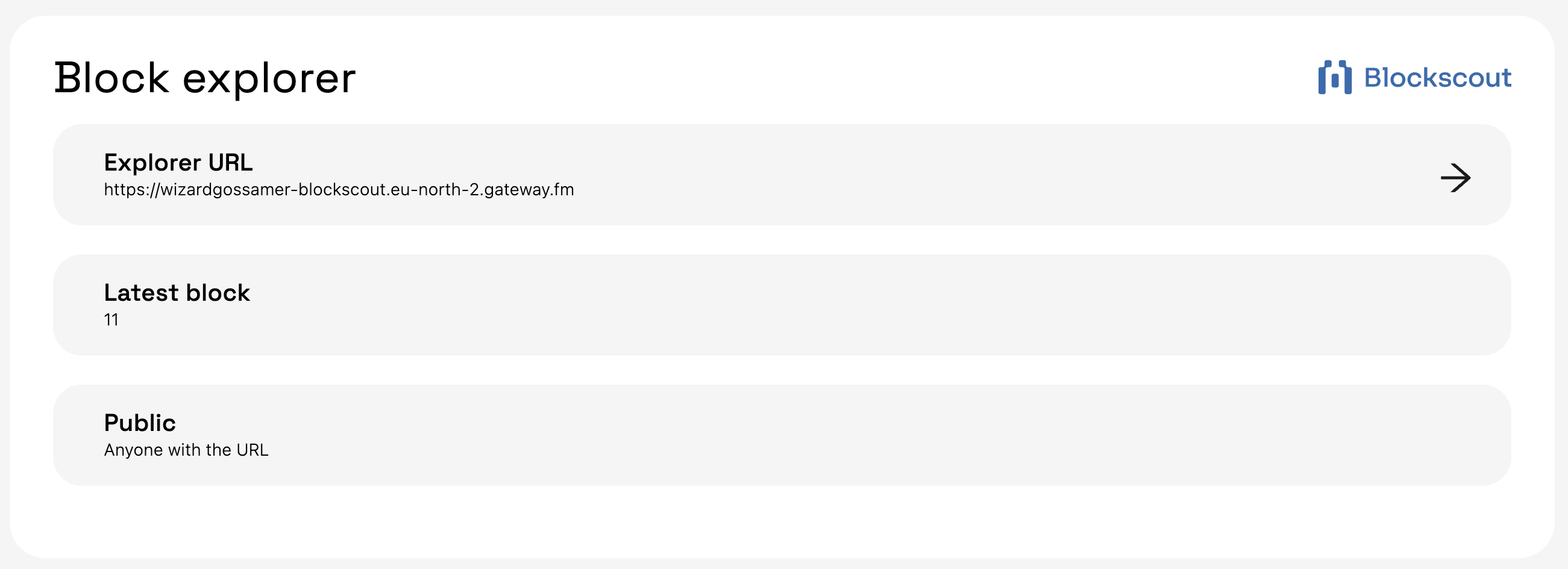 Each rollup comes with the blockscout instance. (See[ How to use a Block Explorer](https://docs-presto.gateway.fm/overview/main-functionality/how-to-use-a-block-explorer)).